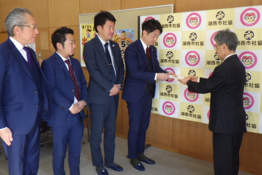 TOPICSトピックス すべて 社協からのお知らせ 地域からのお知らせ 社協だより 寄附者紹介 災害義援金募集 寄附者紹介 2026.01.27 令和8年1月23日 静岡県トラック協会西部支部 様 寄附者紹介 2026.01.23 令和8年1月19日 浜名湖ボートレース企業団 様 社協からのお知らせ 2026.01.14 【重要】本会会長名を装った迷惑メール(なりすましメール)にご注意ください 社協からのお知らせ 2026.01.05 介護保険事業所の一部廃止について 寄附者紹介 2026.01.05 令和7年12月26日 浜松いわた信用金庫店別対抗チャリティゴルフ大会 様 社協からのお知らせ 2026.01.05 フードドライブ~ご家庭に眠っている食品を提供してください~ 寄附者紹介 2026.01.05 令和7年12月24日 湖西市老人クラブ連合会 様 寄附者紹介 2026.01.05 令和7年12月23日 株式会社ダイナム静岡新居店 様 災害義援金募集 2026.01.05 災害義援金情報(令和8年1月5日現在)を更新しました 寄附者紹介 2025.12.23 令和7年12月23日 湖西クラウン会 様 寄附者紹介 2025.12.23 令和7年12月16日 scale(湖西軽音楽愛好会) 様 寄附者紹介 2025.12.15 令和7年12月12日 株式会社デンソー湖西製作所 様 1 2 … 27 NEXT 次のページ» TOP - トピックス